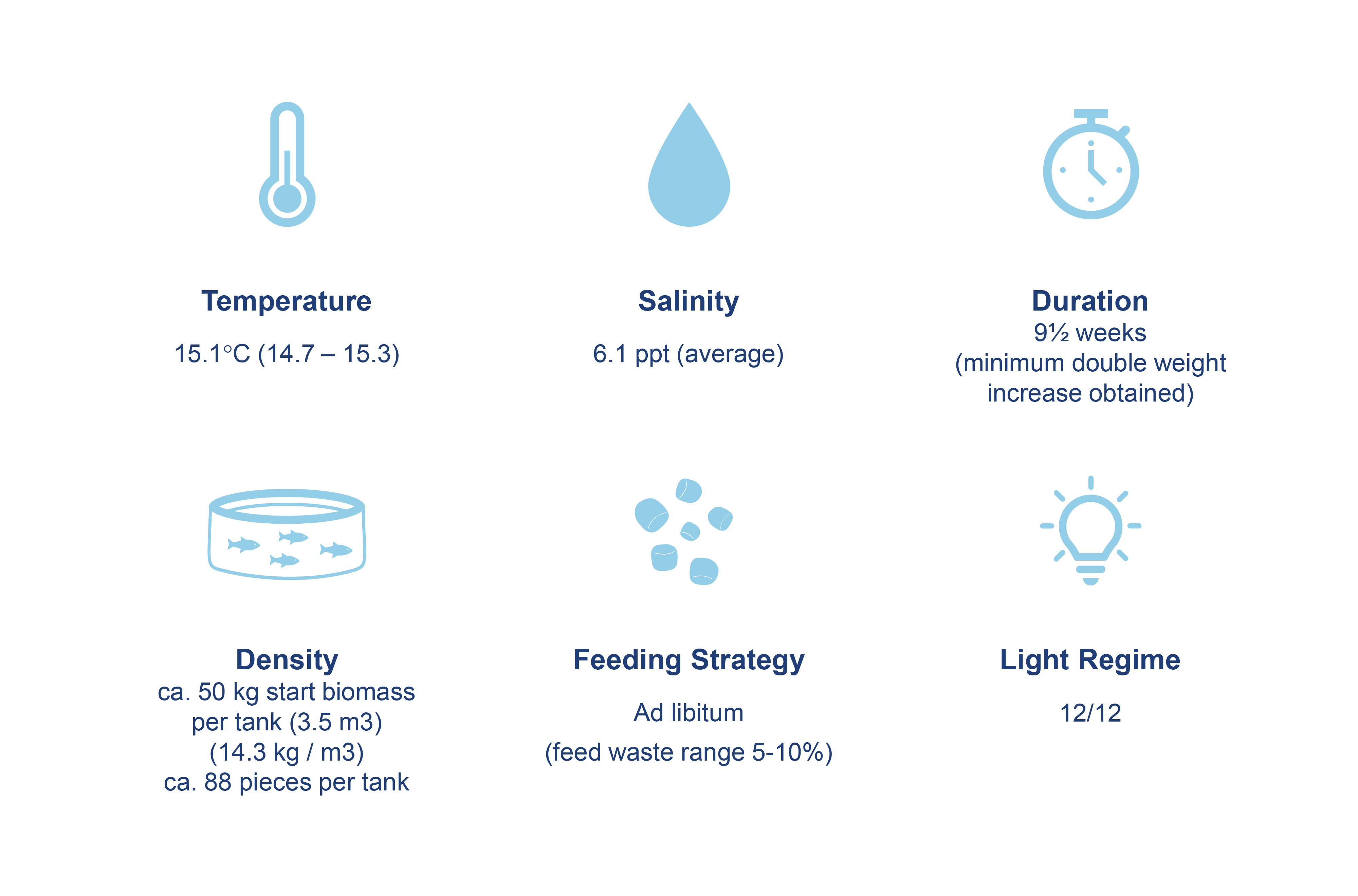 The feeding level throughout this trial was above recommended feeding level (ad libitum), with feed waste observed. The total economic performance measurements indicate that both BioMar diets have a better overall score compared to Competitor A.