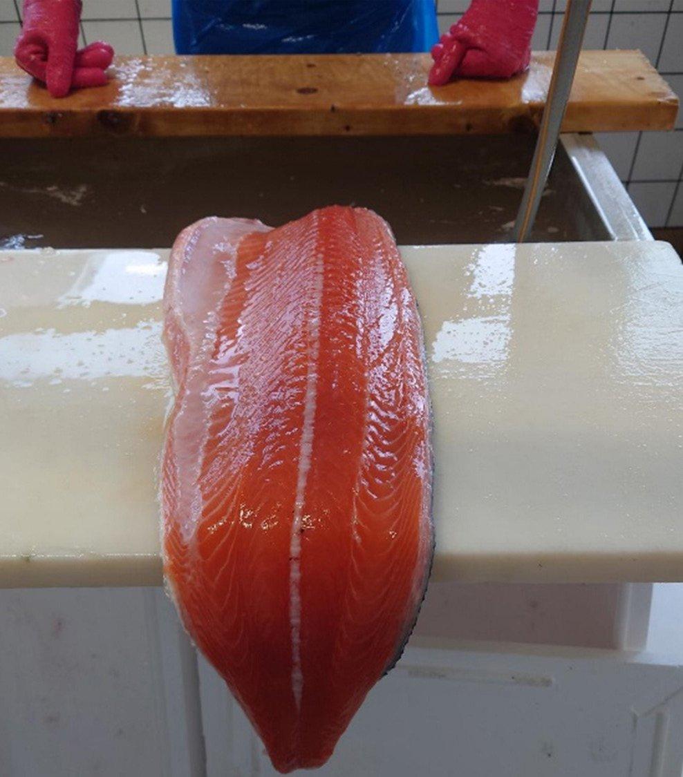Røykekvaliteten av den mikroalgefôrene laksen ble vurdert av lokalt røykeri i Sandnessjøen.