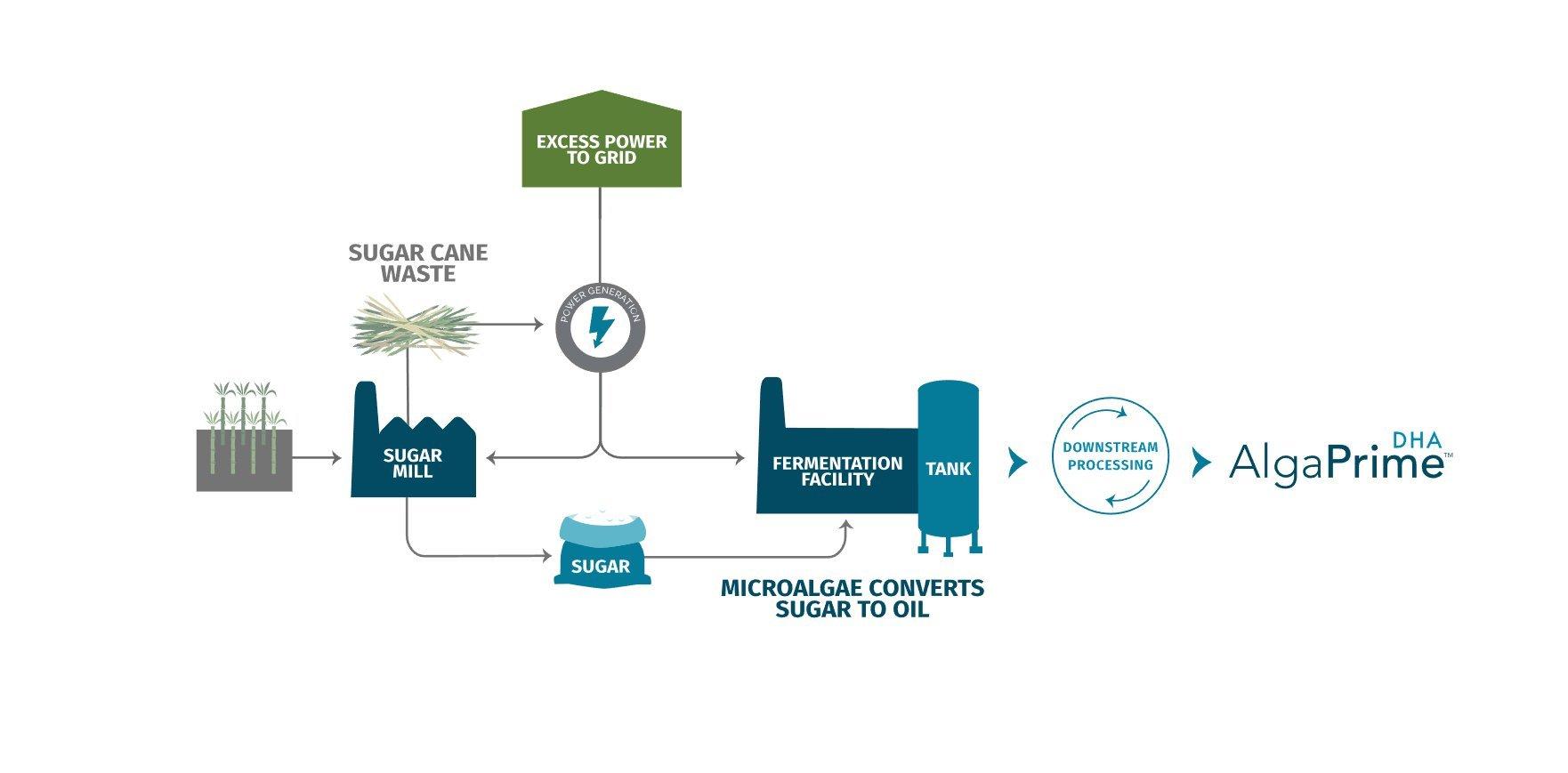 Microalgae is a renewable and fast-growing resource, a tiny but mighty organism that produces large quantities of omega-3. Despite being single-celled, algae are incredibly effective. The process is land-efficient, with just one hectare of land used to optimize both algae and sugar cultivation. AlgaPrime's production also follows a circular economy model, using waste products, like sugar cane waste, to generate energy, making the entire process more environmentally friendly.