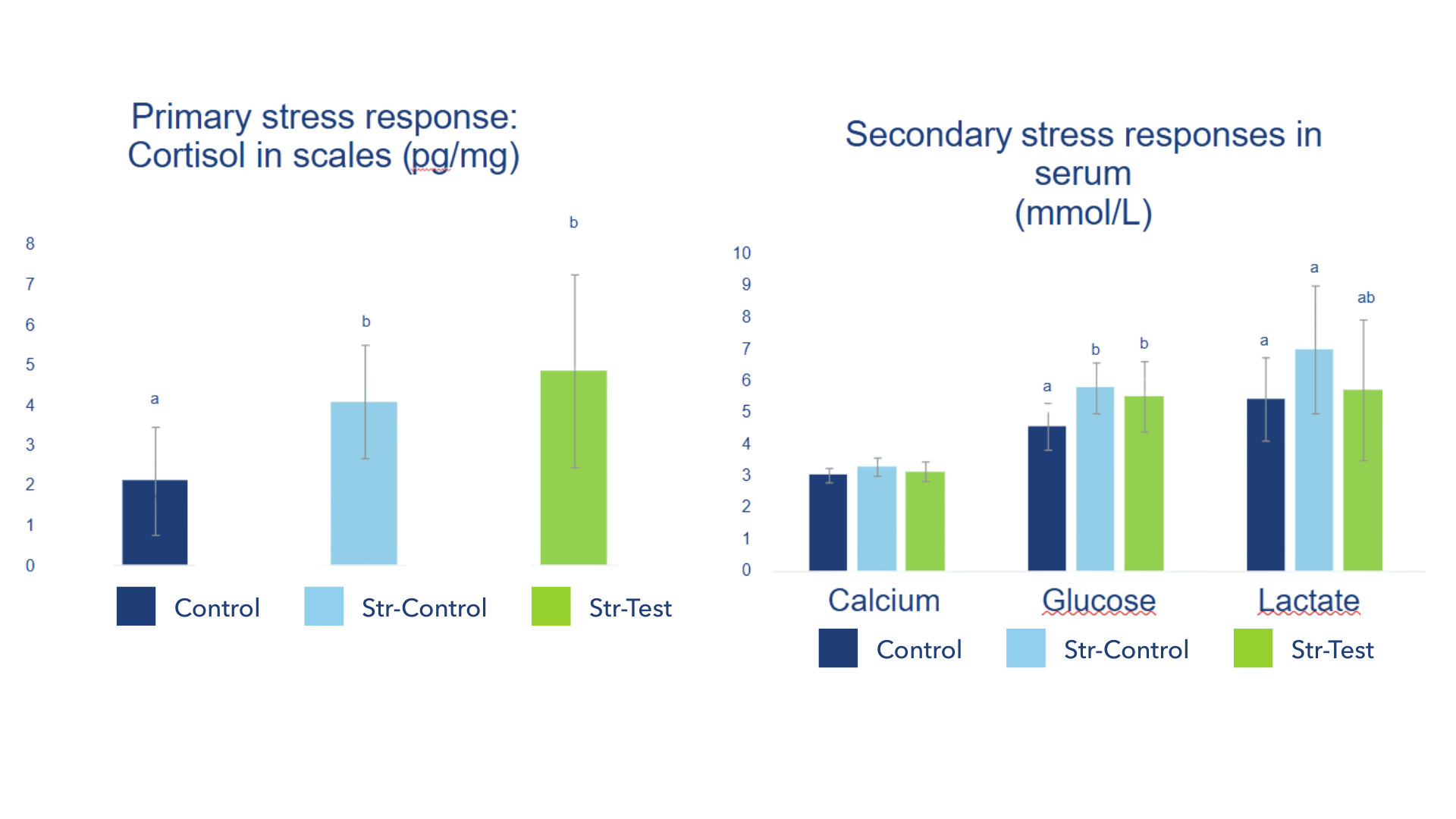 Despite no significant differences in cortisol or serum stress markers between stressed groups, fish on the functional feed demonstrated a more favourable post-stress growth trajectory. Appetite stimulation appears to be the key driver behind this recovery effect.