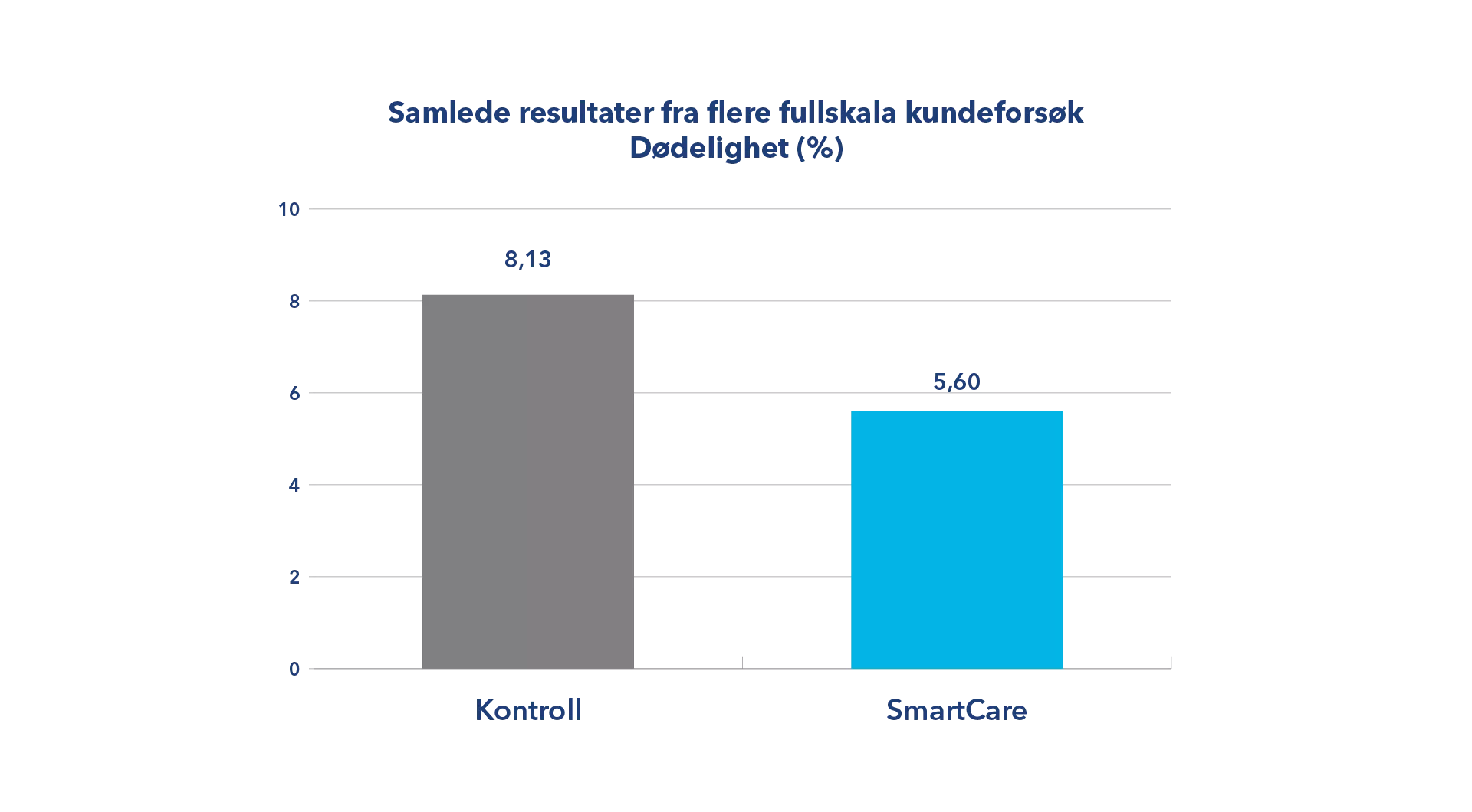 Resultatene fra det nyeste kundeforsøket samsvarer godt med tidligere storskala feltforsøk hos kunder med samme vinterfôrstrategi. Utfordringene med sår og vintersår vil inntreffe, men velferdsscoringen viser gjennomgående lavere grad av alvorlig sår hos gruppene som har fått Total Care og Assist Skin. I samtlige forsøk ser vi også at dette resulterer 31% i lavere dødelighet i perioden (figur 3).