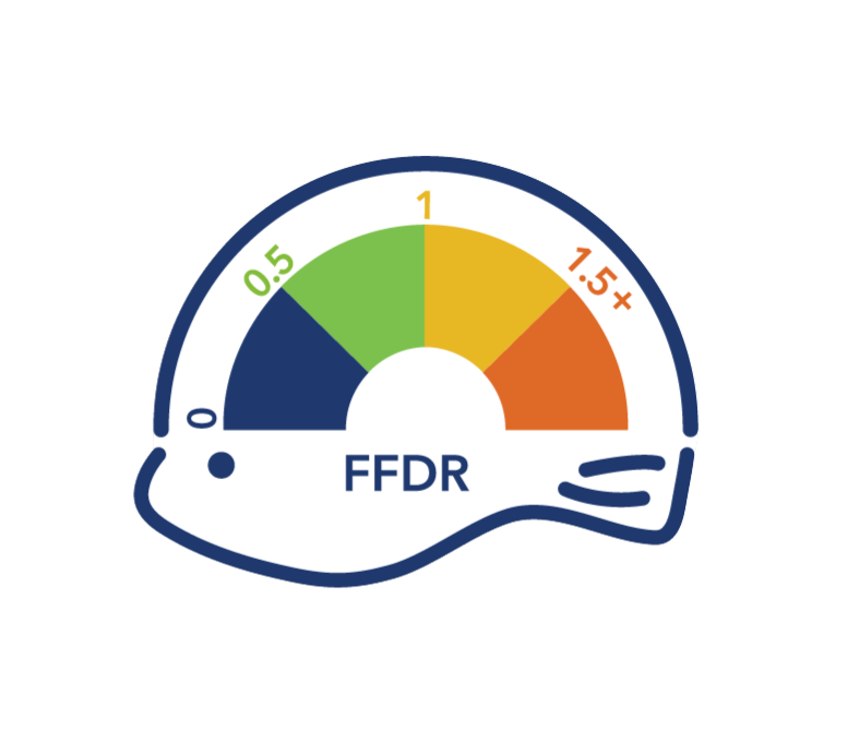 饲料饲料鱼依存率(FFDR)表示根据ASC农场标准计算的用于生产养殖鱼类或虾类的野生鱼的数量。该措施考虑了野生鱼类对蛋白质和油脂的贡献,其中最受限制的因素是决定饲料的FFDR。在养殖场的FFDR可以通过将饲料的FFDR乘以农场获得的经济饲料转化率(eFCR)来计算。