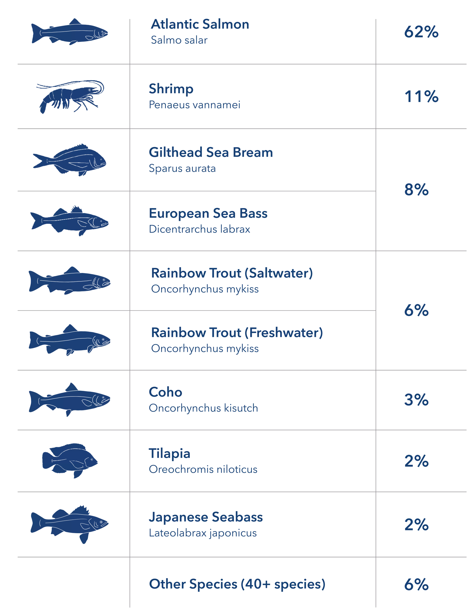 在全球范围内,我们通过位于挪威、智利、丹麦、苏格兰、西班牙、法国、希腊、土耳其、中国、越南、哥斯达黎加、厄瓜多尔和澳大利亚的16家饲料生产厂,向约90个国家提供饲料,满足45种以上不同品种的饲料需求。